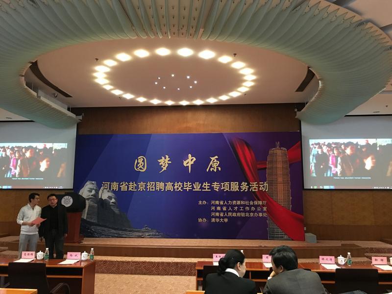 此次活动是为了满足河南省经济社会发展对高层次人才的需求,积极引进优秀高校毕业生到河南就业创业,助推中原经济区建设快速发展而开展的一次专项服务活动,由河南省人力资源社会保障厅、河南省人才工作办公室、河南省政府驻京办主办,清华大学协办。清华大学党委书记陈旭会见活动参与方,河南省人民政府副省长王艳玲出席活动开幕仪式并讲话,清华大学副校长杨斌发表致辞,省委组织部副部长周斌主持开幕式,省人力资源社会保障厅厅长刘世伟介绍招聘活动有关情况。